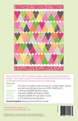 Piece a 64-1/2in x 85-1/2in elegant modern valentine with Amanda Murphy Design. The model is shown in Serenity by Amanda Murphy for Contempo of Benartex and SKUs for the heart prints are listed inside. This item is subject to a Minimum Advertised Pricing Policy (MAP price listed) Full Brewer MAP policy details are available for review on our website under the Shop Resource tab. **Available August 2022**