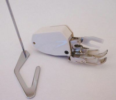 9.20mm top load with quilting guide. Similar to the 10449, this foot has a complete metal housing (including the shank) which prevents breakage and ensures a long product life. This foot is great for use with materials such as vinyl, cloth, synthetic leather, thin leather and more. This foot prevents crumpling, slipping or sticking between presser foot and materials. Use with all low shank machines (except Janome top load)