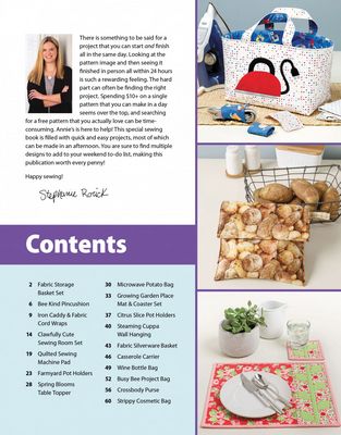 Quick & Easy Sewing is filled with bright, happy projects you can make in an afternoon, a day, or a weekend. Beginners and advanced sewists alike will love to make these projects for every room of their house or for a friend. Also included is a time estimate so you can easily pick the perfect project for your weekend. 64 pages and 20+ projects.