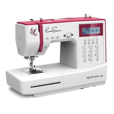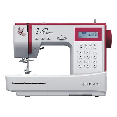 EVERSEWN 197 stitch computerized sewing machine with alphabet. Features include: LCD Display, Drop-in Hook System, 163mm Free arm length, 850 spm (Maximum sewing speed), Upper-thread tension manually adjustable, Manual thread cutter, Start/stop button, LED sewing light, Threader, Needle stop up/down, Twin-needle capability, Slide speed control, 2-step presser foot lift, Electric foot control, 8 (1-step) Buttonholes including eyelets, 14 Utility stitches including stretch stitches, 2 Darning stitches, 58 Decorative stitches, 18 Quilting stitches, 1 (97 letters) alphabet, 7mm Maximum stitch width, 4.5mm Maximum stitch length, Drop feed-dog, Memory, Automatic bobbin winder, Automatic Securing Function, 7 Presser feet (soles), and a dust cover. **Freight Intensive** Billable transportation charges for freight intensive items will be the greater of the dimensional weight compared to the actual weight. In addition to transportation charges, freight carriers may assess an additional oversize charge per package. *** MAP $359.99*** Full Brewer MAP policy details are available for review on our website, under the Shop Resource tab.